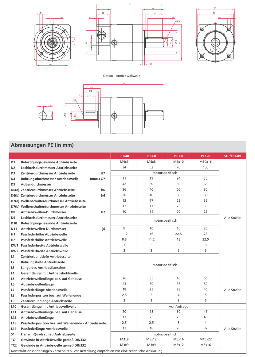 - Zylindr. Abtriebswelle mit Passfeder oder glatte Abtriebswelle - Antriebsseitige Optionen: