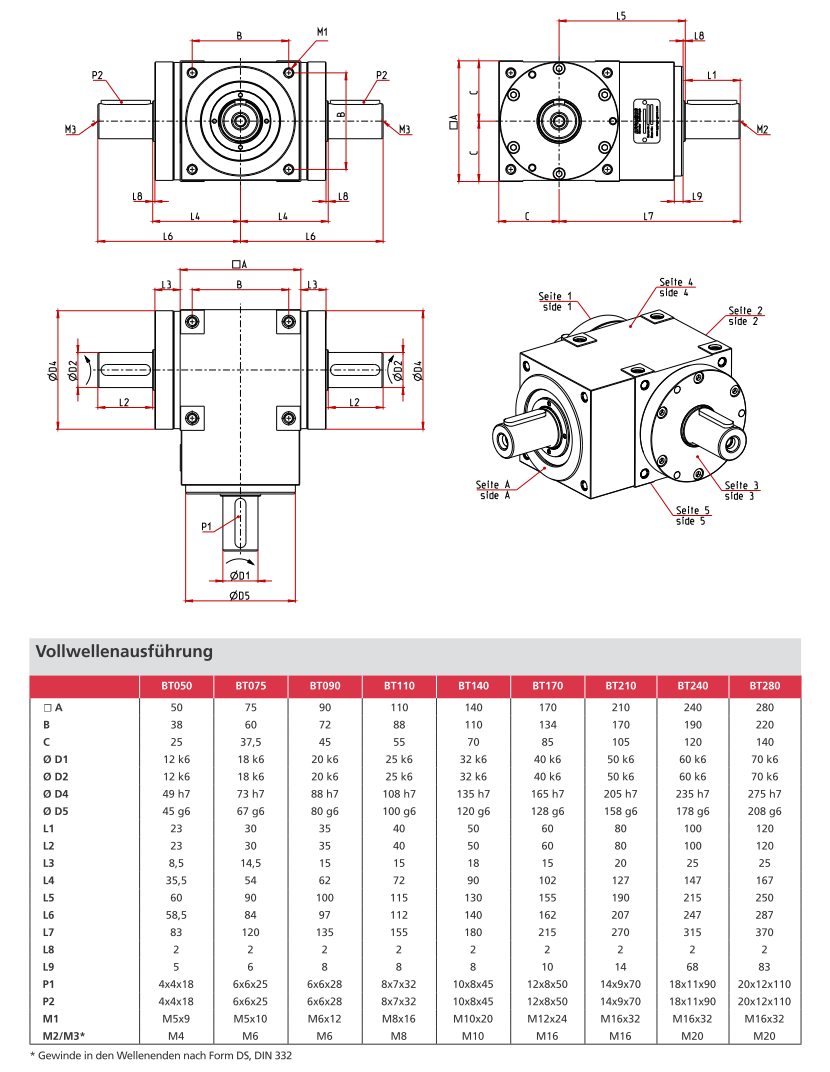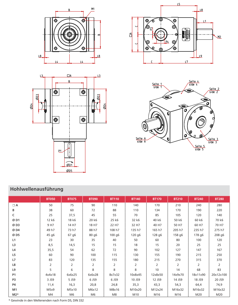 - Size: | 050 | 075 | 090 | 110 | 140 | 170 | 210 | 240 | 280 |(corresponds to the edge length of the gear unit)