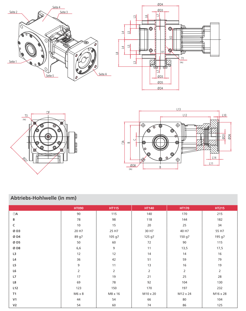 - Size: | 090 | 115 | 140 | 170 | 215 |(corresponds to edge length of the gear unit)